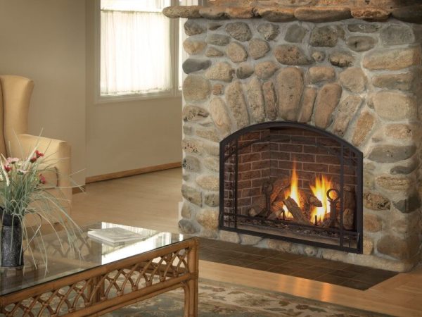 Clean-face traditional fireplace available with a traditional log set. Available in arched or rectangular opening.